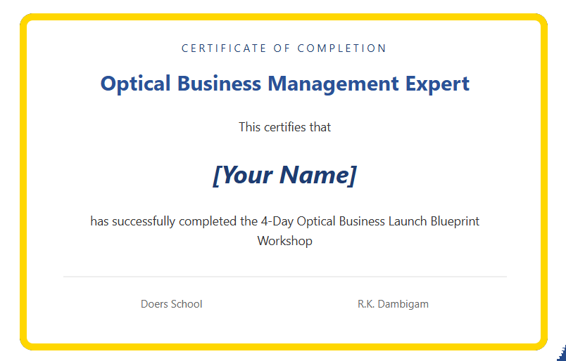 Complete this comprehensive workshop and receive an industry-recognized certification perfect for starting your own business or advancing your career in optical retail management.